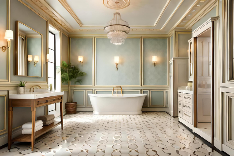 Think crown moulding, hardwood floors, and rich, inviting colours. This style works well for creating cosy yet luxurious spaces.